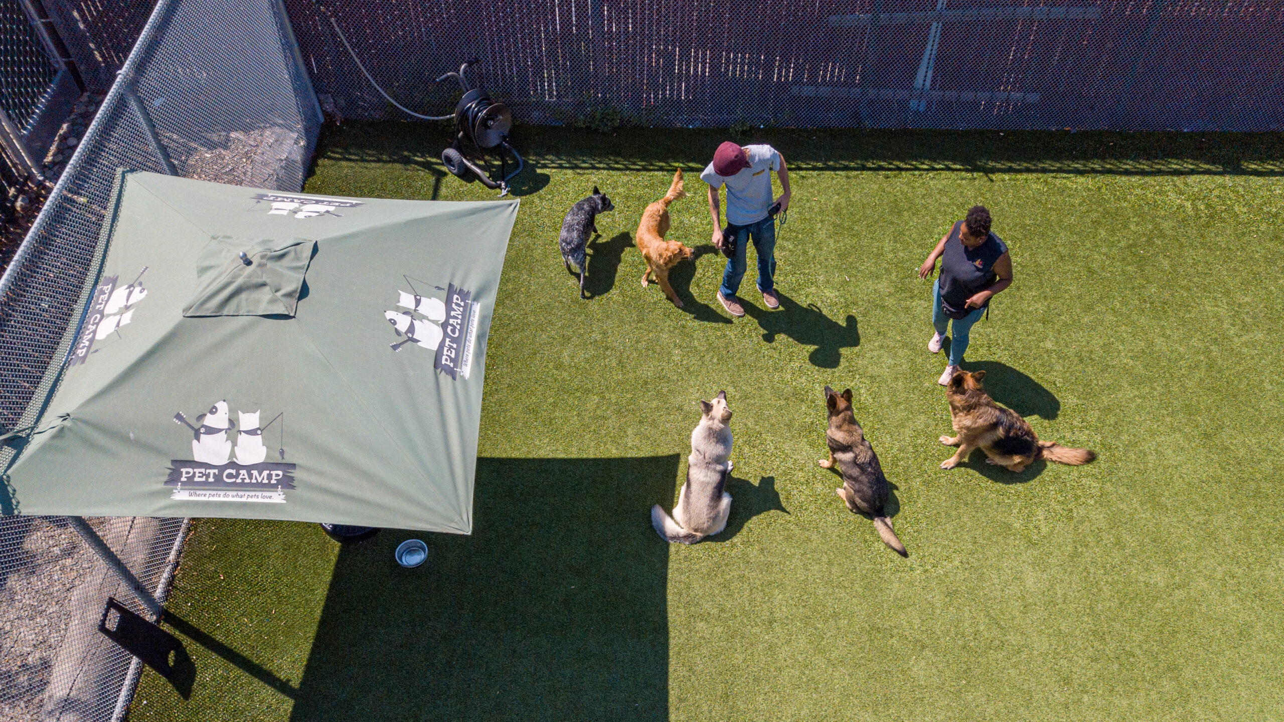 When we opened Pet Camp, we designed it so dogs from different families could play together in our 5,000-square-foot outdoor “dog park.” At the time, the idea was so controversial that the American Boarding Kennel Association almost didn’t let us join! From day one, outdoor play space has been central to who we are.