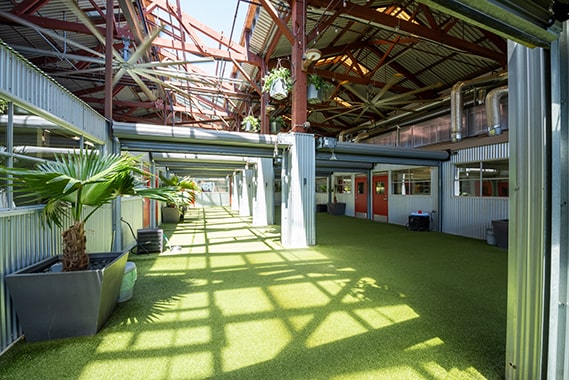 The Meadow (3,300 sq. ft.): A unique indoor/outdoor play space with a retractable glass roof.